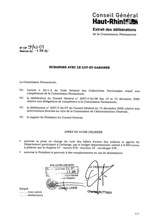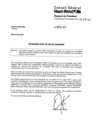 Le présent rapport a comme objet d'autoriser la prise en charge par le budget départemental des billets d'avion des enfants et agents participant aux échanges avec le Lot-et-Garonne.