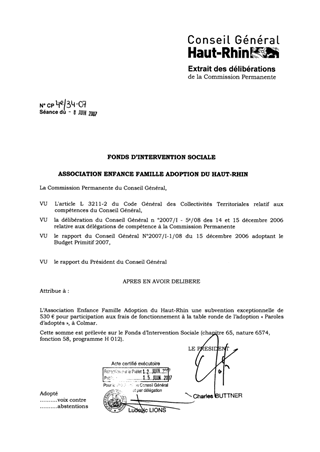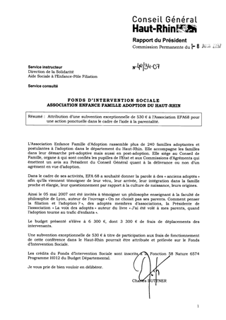 Fonds d'intervention sociale. Association Enfance Famille Adoption du Haut-Rhin
