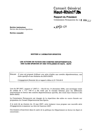 Il vous est proposé d'allouer une série d'aides aux comités départementaux, aux clubs sportifs et aux titulaires du BAFA-BAFD. L'engagement financier de ce rapport s'élève à 25 729,66 €.