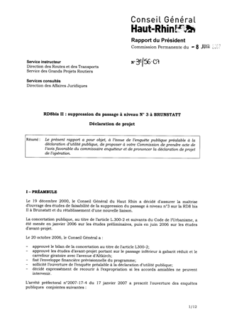Le présent rapport a pour objet, à l’issue de l’enquête publique préalable à la déclaration d’utilité publique, de proposer à votre Commission de prendre acte de l’avis favorable du commissaire enquêteur et de prononcer la déclaration de projet de l’opération.