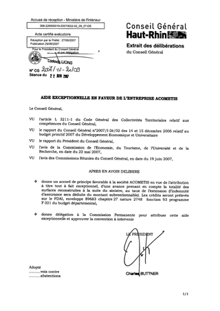 Aide exceptionnelle en faveur de l'entreprise ACOMETIS