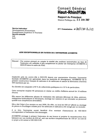 Une avance prenant en compte la totalité des surfaces reconstruites au taux de l’extension est sollicitée à titre exceptionnel en faveur de l’entreprise ACOMETIS à SOULTZ dans le cadre du FDAI.