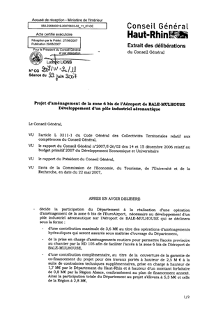 Dans le cadre d’un développement des activités économiques aéronautiques, l’EuroAirport est amené à réaliser des travaux d’aménagement de la zone 6 bis de l’Aéroport de BALE-MULHOUSE, qui conduisent et contribuent à l’implantation et au développement d’emplois qualifiés. Il est proposé, dans le cadre du présent rapport, de soutenir de façon significative cette création de richesses économiques et d’emplois sur le territoire du Haut-Rhin