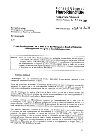 Projet d'aménagement de la zone 6 bis de l'aéroport de Bâle-Mulhouse : développement d'un pôle industriel aéronautique