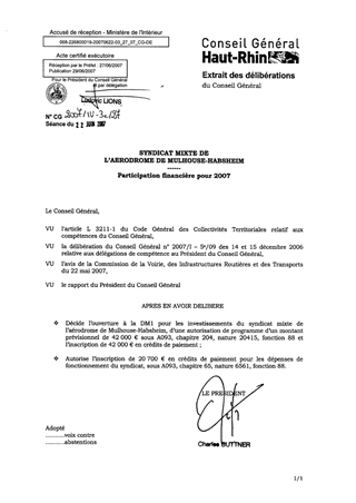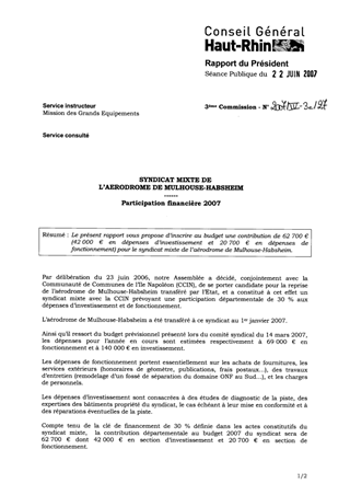 Syndicat Mixte de l'aérodrome de Mulhouse-Habsheim : participation financière 2007