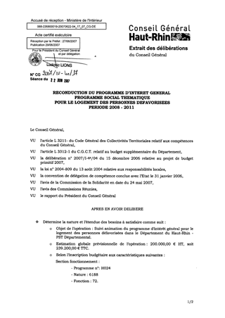 Reconduction du programme d'intérêt général - Programme social thématique pour le logement des personnes défavorisées Période 2008-2011