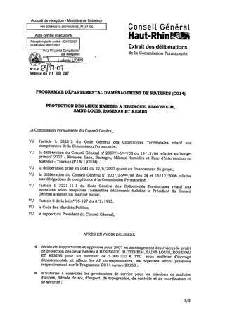 Programme départemental d'aménagement de rivières (CO14). Protection des lieux habités à HESINGUE, BLOTZHEIM, SAINT-LOUIS, ROSENAU et KEMBS