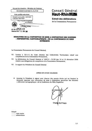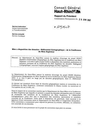Le Département du Haut-Rhin assure la maîtrise d’ouvrage du projet SIGRS (Système d’Information Géographique du Rhin Supérieur) de la Conférence du Rhin Supérieur. A ce titre il gère et peut mettre à disposition des membres, partenaires et membres connexes de la Conférence du Rhin Supérieur les données "Référentiel Cartographique" couvrant l'espace géographique du Rhin Supérieur.