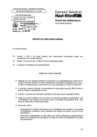 Le présent rapport fait le point sur le projet de taxe alsacienne sur les poids lourds. Il pose les conditions de l’intégration ou non de la route départementale (RD) 83 dans le périmètre des routes qui pourraient être soumises à taxation. A ce titre, il demande à l’Etat d’une part d’organiser un retour juste et équitable des produits de la taxe vers les collectivités et l’économie locale, d’autre part d’engager une concertation sur la localisation des sections et des points de tarification, et enfin de prendre en charge les mesures de comptage et de contrôle sur les axes secondaires susceptibles de faire l’objet de reports de trafic. Le rapport exprime également le souhait du Département d’être associé à l’ensemble des procédures de mise en œuvre du dispositif et de choix des prestataires.