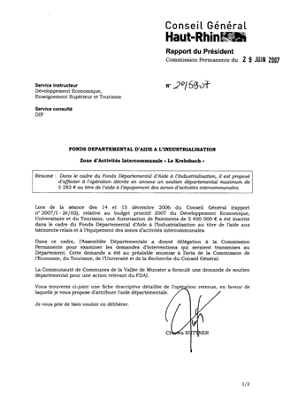 Dans le cadre du Fonds Départemental d’Aide à l’Industrialisation, il est proposé d’affecter à l’opération décrite en annexe un soutien départemental maximum de 5 283 € au titre de l’aide à l’équipement des zones d’activités intercommunales.