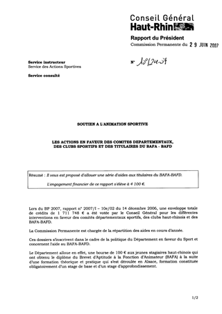 Soutien à l'animation sportive : les actions en faveur des comités départementaux, des clubs sportifs et des titulaires du BAFA - BAFD