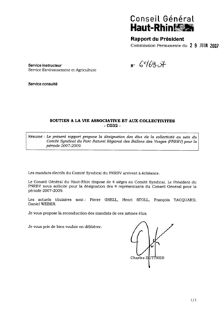 Le présent rapport propose la désignation des élus de la collectivité au sein du Comité Syndical du Parc Naturel Régional des Ballons des Vosges (PNRBV) pour la période 2007-2009.