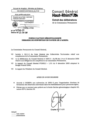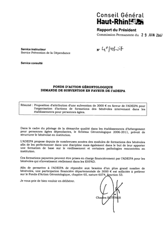 Fonds d'action gérontologique. Demande de subvention en faveur de l'association de l'ADEIPA