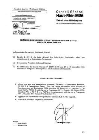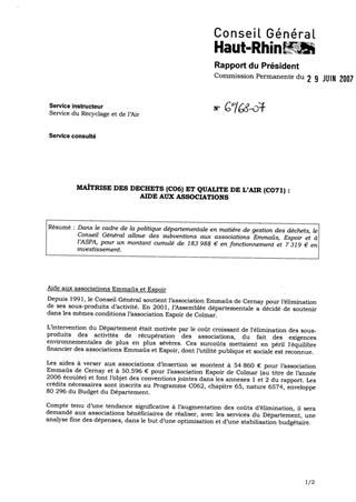 Dans le cadre de la politique départementale en matière de gestion des déchets, le Conseil Général alloue des subventions aux associations Emmaüs, Espoir et à l’ASPA, pour un montant cumulé de 183 988 € en fonctionnement et 7 319 € en investissement.