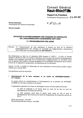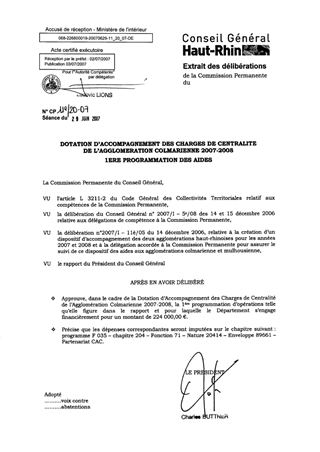 1ère Programmation de trois opérations à inscrire au titre de la Dotation d’Accompagnement des Charges de Centralité de l’Agglomération Colmarienne 2007-2008, pour un montant global de 224 000,00 €.