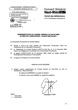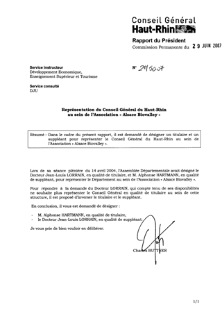 Représentation du Conseil Général du Haut-Rhin au sein de l'Association "Alsace Biovalley"
