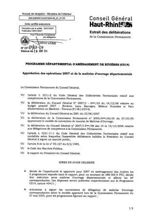 Programme départemental d'aménagement de rivières (CO14). Approbation des opérations 2007 et de la maîtrise d'ouvrage départementale