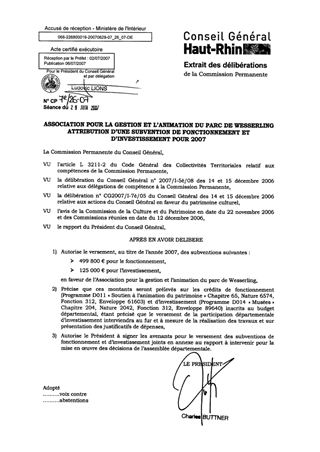 Dans le cadre de notre action de valorisation du patrimoine et de notre soutien aux associations qui gèrent et animent les sites patrimoniaux, il vous est proposé d’allouer à l’Association pour la gestion et l’animation du parc de Wesserling des subventions de fonctionnement de 499 800 € et d’investissement à hauteur de l’autorisation de programme de 125 000 € ouverte au budget départemental.