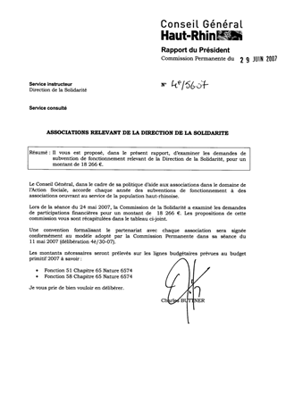 Il vous est proposé, dans le présent rapport, d’examiner les demandes de subvention de fonctionnement relevant de la Direction de la Solidarité, pour un montant de 18 266 €.