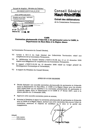 CAHR. Convention pluriannuelle d'objectifs et de partenariat entre le CAHR, le Département du Haut-Rhin et la Région Alsace