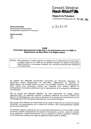 Afin d’apporter un cadre commun et partagé entre le Département du Haut-Rhin, la Région Alsace et le CAHR sur les grandes missions de l’agence économique départementale, il est proposé d’adopter une convention pluriannuelle d’objectifs et de partenariat.