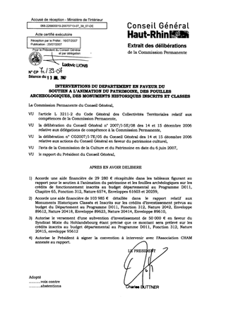 Interventions du Département en faveur du soutien à l'animation du patrimoine, des fouilles archéologiques, des monuments historiques inscrits et classés