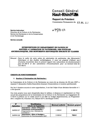 Dans le cadre de notre action de valorisation du patrimoine, des Monuments Historiques et des fouilles archéologiques, il vous est proposé d’allouer aux structures énumérées dans le présent rapport des subventions de fonctionnement pour 29 280 € et des subventions d’investissement pour un montant total de 103 985 €.