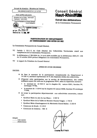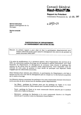 Le présent rapport a pour objet de fixer la participation départementale pour chaque collectivité locale ayant assuré le déneigement des sites de ski pendant la saison hivernale 2006/2007.