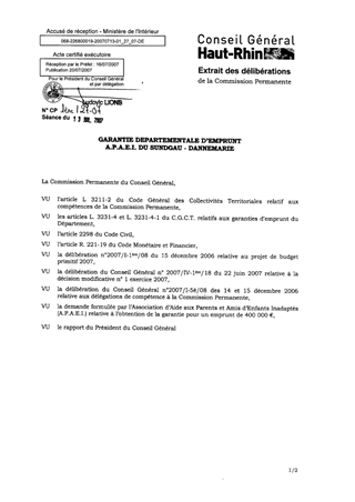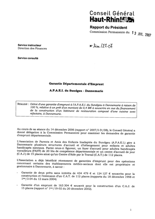 Garantie départementale d'emprunt. APAEI du Sundgau - DANNEMARIE