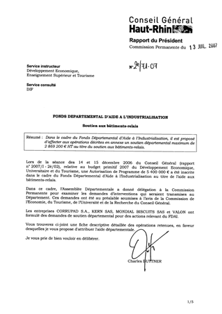 Fonds Départemental d'Aide à l'Industrialisatiion. Soutien aux bâtiments-relais