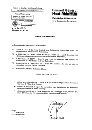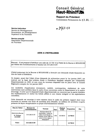 Il est proposé d’attribuer une aide de 13 750 € à l’hôtel de la Bourse à MULHOUSE qui réalise des investissements à hauteur de 310 283 € HT.