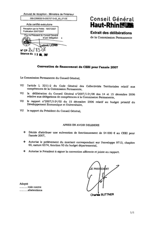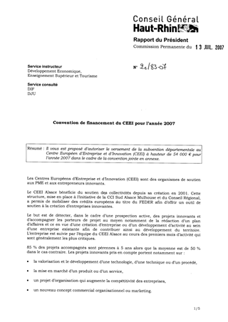 Il vous est proposé d’autoriser le versement de la subvention départementale au Centre Européen d’Entreprise et d’Innovation (CEEI) à hauteur de 54 000 € pour l’année 2007 dans le cadre de la convention jointe en annexe.