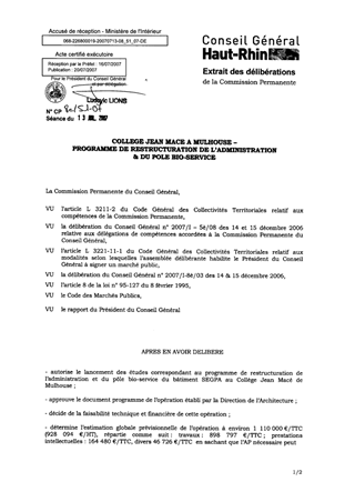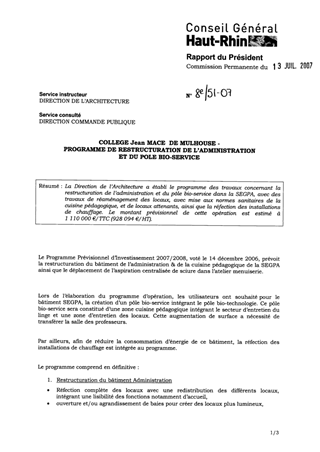 Collège Jean Macé de MULHOUSE. Programme de restructuration de l'administration et du pôle bio-service
