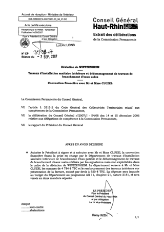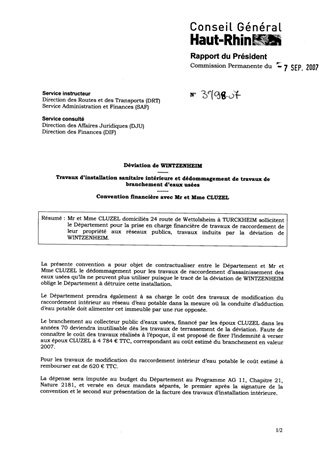 Mr et Mme CLUZEL domiciliés 24 route de Wettolsheim à TURCKHEIM sollicitent le Département pour la prise en charge financière de travaux de raccordement de leur propriété aux réseaux publics, travaux induits par la déviation de WINTZENHEIM.