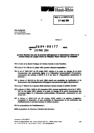 Portant fixation des prix de journée hébergement et dépendance 2004 de la section Soins de Longue Durée de l'ôpital " Saint Vincent" de ODEREN Resumé Pièces jointes ARRETE Assemblée : Non défini Date : 26/03/2004 Rapporteur : Non défini Collectivité : Conseil départemental du Haut-Rhin Direction : Non défini Service : Service de la Tarification des Etablissements Domaine : Prix de Journée Commission :