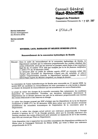 Rivières, lacs, barrages et milieux humides (C 014) : renouvellement de la concession hydraulique de Kembs