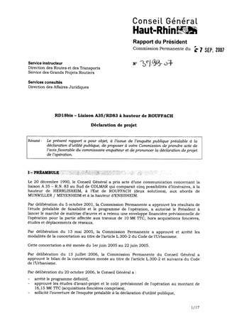 RD18bis. Liaison A35/RD83 à hauteur de Rouffach. Déclaration de projet