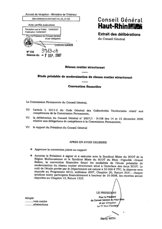 Dans le cadre de la modernisation du réseau routier structurant situé à l’interface des SCOT de la Région Mulhousienne et SCOT du Rhin-Vignoble-Grand Ballon, le Département assurera la maîtrise d’ouvrage de l’étude préalable en collaboration avec les deux syndicats mixtes concernés.