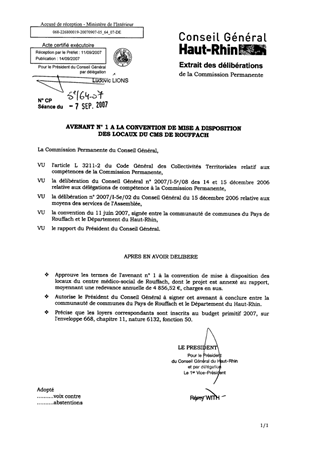 Avenant n°1 à la convention de mise à disposition des locaux du CMS de Rouffach