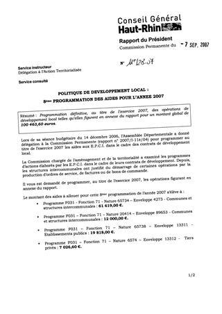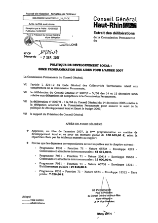 Programmation définitive, au titre de l’exercice 2007, des opérations de développement local telles qu’elles figurent en annexe du rapport pour un montant global de 100 463,60 euros.
