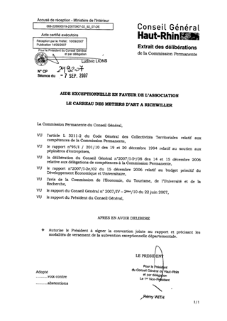Aide exceptionnelle en faveur de l'Association "Le Carreau des Métiers d'Art à Richwiller"