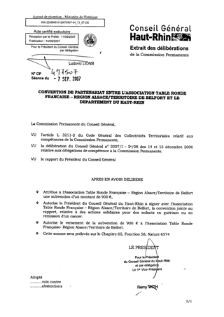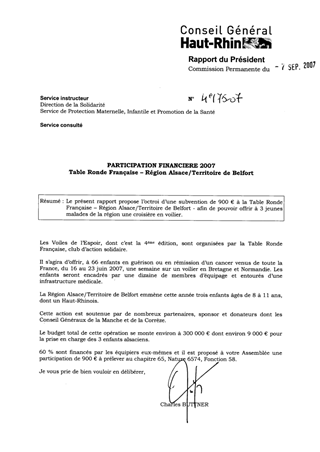 Participation financière 2007. Table ronde Française Région Alsace / Territoire de Belfort