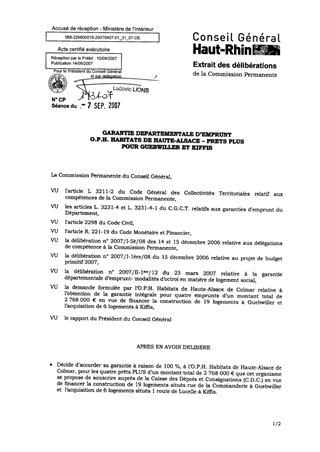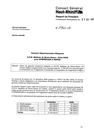 garantie départementale d'emprunt. OPH Habitats de Haute Alsace - prêt PLUS pour Guebwiller et Kiffis