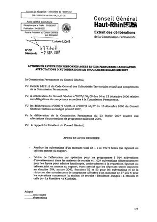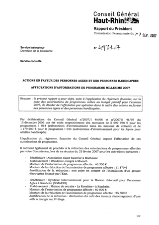 le présent rapport a pour objet, suite à l’application du règlement financier, sur la base des autorisations de programmes votées au budget primitif pour l’exercice 2007, de décider de l’affectation par opération dans le cadre des actions en faveur des personnes âgées et des personnes handicapées .