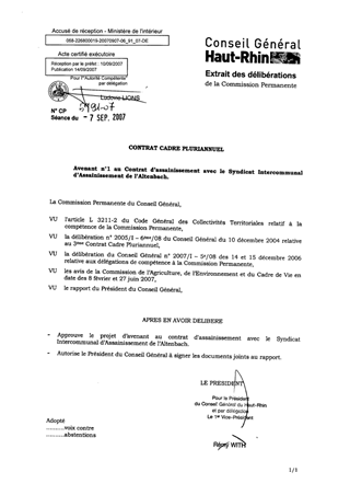 Contrat Cadre pluriannuel. Avenant n° 1 du contrat d'assainissement avec le SIA de l'Altenbach