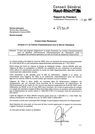 Il vous est proposé d’approuver le projet d’avenant au contrat d’assainissement avec le Syndicat Intercommunal d’Assainissement de l’Altenbach, suite à l’inscription de certaines opérations au titre du Fonds de Solidarité Urbain-Rural.