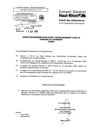 Les aides départementales pour l’investissement dans le domaine du logement sont allouées à la CAMSA dans le cadre d’une convention partenariale annuelle approuvée par le Conseil Général le 22 juin 2007. Sont éligibles 21 opérations de logements aidés, pour un montant de 538 200 €, au titre de l’aide à l’acquisition foncière.