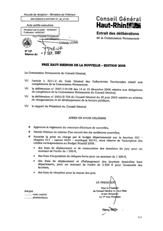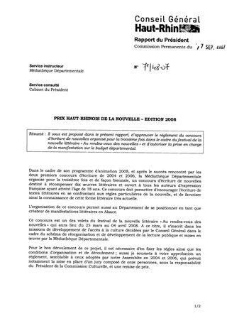 Il vous est proposé dans le présent rapport, d’approuver le règlement du concours d’écriture de nouvelles organisé pour la troisième fois dans le cadre du festival de la nouvelle littéraire « Au rendez-vous des nouvelles » et d’autoriser la prise en charge de la manifestation sur le budget départemental.