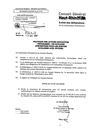 Politique des actions éducatives : programme vie scolaire : subventions pour les sorties scolaires avec nuitées