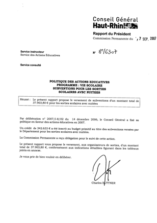 Le présent rapport propose le versement de subventions d’un montant total de 37.903,80 € pour les sorties scolaires avec nuitées